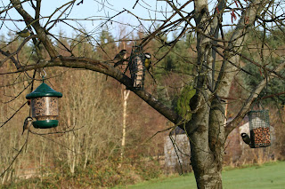 There is a really decent procession of birds to the feeders: we are providing Peanuts, a seed mix with sunflower hearts added and a square of fat/nut mix.